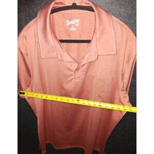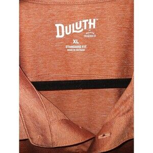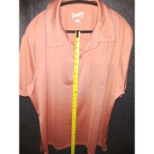 Description: Duluth Trading Co Short Sleeve Polo Shirt Extra Large with a front pocket. The color is a burnt orange, coral like color with a slub texture design. Classic, Casual, Golf wear.