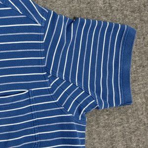 Duluth Trading Co Polo Shirt Mens L Blue Short Sleeve Striped Pocket Side Gusset