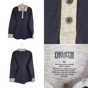 Duluth Trading Co. Polo Shirt Men's Size XL Blue Long Sleeve Henley Collared