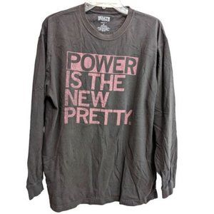 Duluth Trading Co Power Is The New Pretty gray and pink women's top; round neckline; long sleeves; 100% cotton. Pre-owned; in good condition (from my personal collection). Size M. 27" (length), 22" (pit-to-pit). Colors may vary due to lighting. Any questions, please let me know. Ref: T-1315 #0100, 240702.