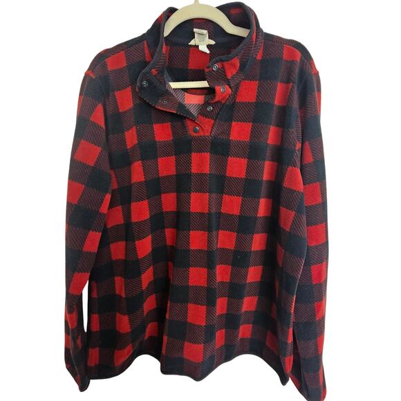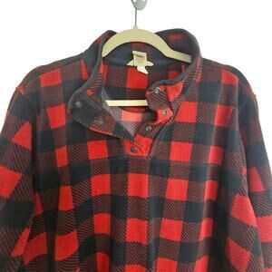 Duluth Trading Co. Red Black Checker Fleece Pullover Sweater Henley Top Men XL