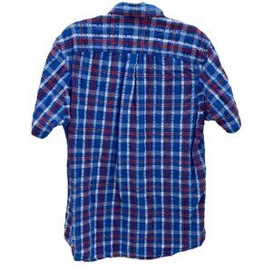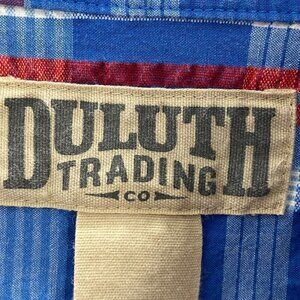 Duluth Trading Co Red/White/Blue Plaid Button Down Short Sleeve Men Size M Tall