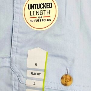 New with Tags. Perfect weight button-down shirt for outdoor adventures. Relaxed fit and untucked length. Front chest pockets. Air vents on front and back. Button cuffs.