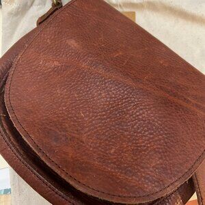 Duluth Trading Co. Rustic Dark Brown Leather Saddle Crossbody Bag