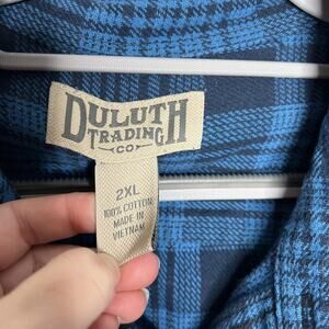 Duluth Trading Co Shirt Mens 2XL Blue Plaid Flannel Button Down Long Sleeve