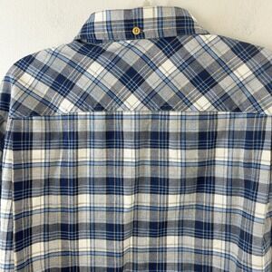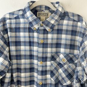 Duluth Trading Co Shirt Mens L Button Down Long Sleeve Windowpane Plaid Blue