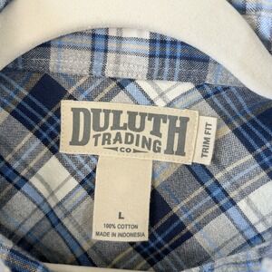 Duluth Trading Co Shirt Mens L Button Down Long Sleeve Windowpane Plaid Trim Fit