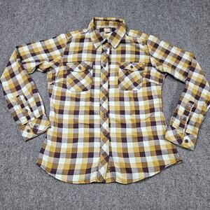 Duluth Trading Co Shirt Size Small Yellow Purple Blue Vented Plaid Top Roll Tab