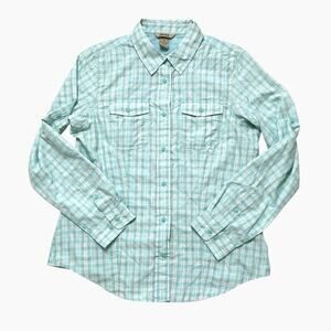 Duluth Trading Co Shirt Womens Medium Vented Mesh Long Sleeve Roll Tab Button Up