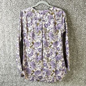 Excellent used Condition Women’s Duluth Trading Co Wrinklefighter Purple and Tan Floral Print Long Sleeve Button Down Tunic Shirt in Size XS