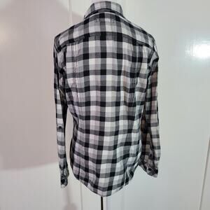 Duluth Trading Co Size M Women's T-Shirt Flannel Long Sleeve Shirt Black White Plaid