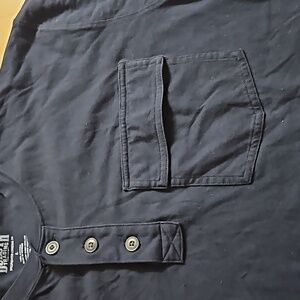 Dulluth Trading Co Spillfighter Longtail t shirt with pocket and 3 buttons.23.5 pit to pit x31" shoulder to hem. Used like new. Navy blue.