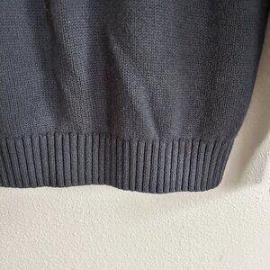 Duluth Trading Co mens size medium gray cotton wool blend knit 1/4 zip mock neck sweater with shoulder and elbow patches.