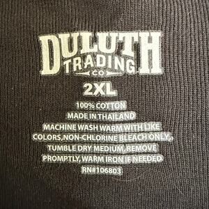 The Duluth Trading Co Top for women in size 2XL is a stylish and versatile black T-shirt with a relaxed fit and oversized boxy style. Made from comfortable cotton material, this pullover shirt features a round neckline, long sleeves, and is machine washable for easy care. Perfect for casual occasions in all seasons, this classic top adds a touch of holiday vibe with its solid black color and basic style. Ideal for everyday wear, this top from Duluth Trading Co is a wardrobe essential for women looking for comfort and style.