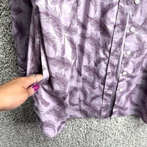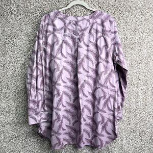 Excellent used Condition Women’s Duluth Trading Co Wrinklefighter Purple Feather Print Tunic Top in Size XXL