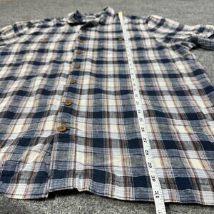 Duluth Trading Co Untucked Navy Plaid Short Sleeve Relaxed Fit Button Up Shirt