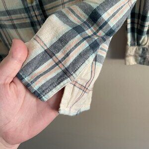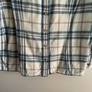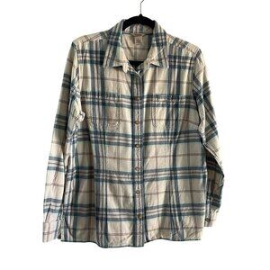 Duluth Trading Co Women L Cream Plaid Long Sleeve Free Swingin’ Flannel Shirt