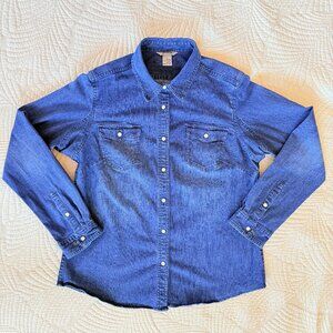 Duluth Trading Co Women's Long Sleeve Denim Pearl Snap Button Western Shirt Size L