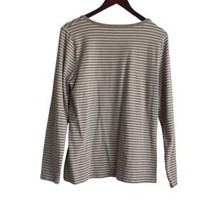 Duluth Trading Co Women Top XL Tan Striped Cotton Comfort Stretch Minimalistic