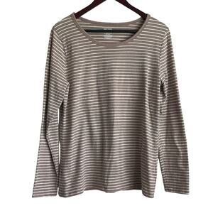 Duluth Trading Co Women Top XL Tan Striped Cotton Comfort Stretch Minimalistic