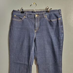 Duluth Trading Co women's bootcut, dark wash jeans, size 14x29.