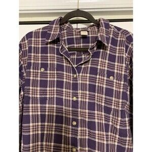 Duluth Trading Co Women's Long Sleeve Button Down Purple Plaid Flannel Top XL