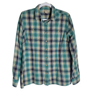 Duluth Trading Co Women's Size Large Cotton Flannel Button Front Shirt Plaid