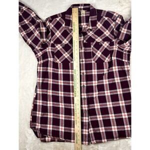 Crafted for durability and comfort, the Duluth Trading Co. Women’s Free Swingin' Flannel Shirt is a staple for any workwear wardrobe. This size XL shirt features a vibrant purple plaid pattern that embodies a grunge aesthetic, perfect for those who appreciate a blend of toughness and style. The 100% cotton fabric ensures breathability and long-lasting wear.