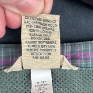 This Duluth Trading Co Shirt for Women is a stylish and versatile addition to your wardrobe. The plaid pattern in purple and green gives it a classic American outdoor look, while the roll-tab sleeves and vented features make it suitable for any season. The button-up closure and collar neckline provide a professional touch, perfect for casual occasions.