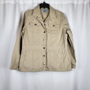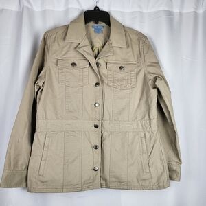 Duluth Trading Co. Women's button down Khaki Jacket Size M 100% Cotton