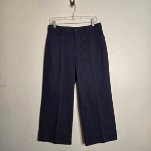 Duluth Trading Co. Workday Warrior Chino Wide Leg Crop Pants Navy Blue 10 Reg