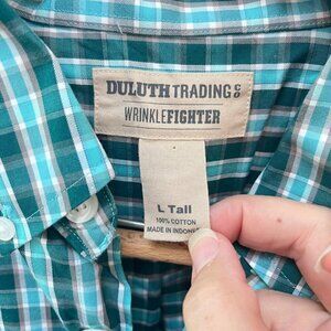 Duluth Trading Co. Wrinklefighter Mens Plaid Long Sleeve Shirt L Tall 100% Cotto