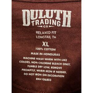 Men’s Duluth Trading Co. relaxed fit Longtail T shirt in maroon/burgundy with sleeveless design. Features a bold black beaver graphic on the chest. Made of 100% cotton for breathable comfort and durability.