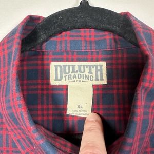 Duluth Trading Co. XLarge Red Blue Plaid Long Sleeve Button Down Shirt