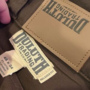These brown Duluth Trading Co pants are super sturdy! My husband got several of the wrong size and forgot to return them so here we are!