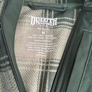 Great condition Duluth Trading Co checkpoint fleece green pullover. Mock zip neck. Zip pocket at chest. Kangaroo zip pockets in front. Lightweight fleece.