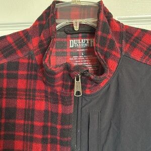 Duluth Trading Co men’s red and black fleece half zip pullover sweater