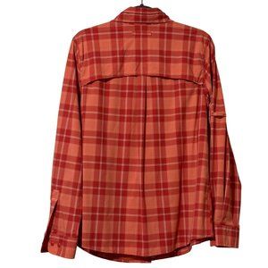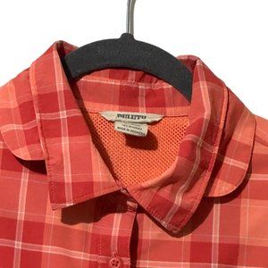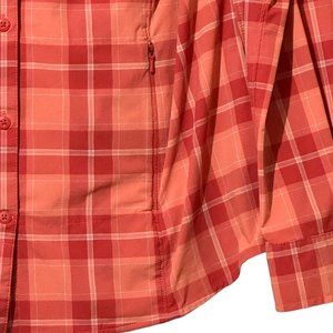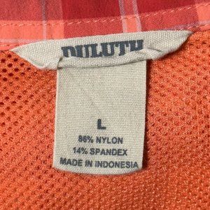 Duluth Trading Co women's size L orange pink plaid zip pockets nylon top