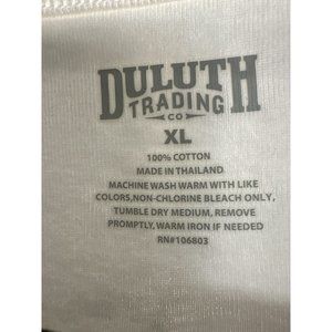 This Duluth Trading Co women's size XL t-shirt offers a relaxed fit and elbow-length sleeves. Crafted from 100% cotton in a crisp white color, it's an essential addition to any wardrobe. It's been steamed and comes from a smoke free home.