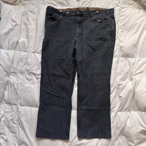 Duluth Trading Company 44x30 Black distressed relaxed wide leg jeans distressed