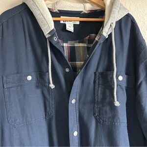 Duluth Trading Company Fire Hose Hooded Limber Canvas Jacket Navy Flannel