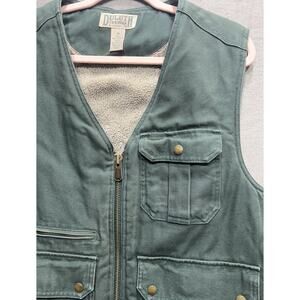 Duluth Trading Company Green Canvas Utility Vest With A Sherpa Lining Men Size M