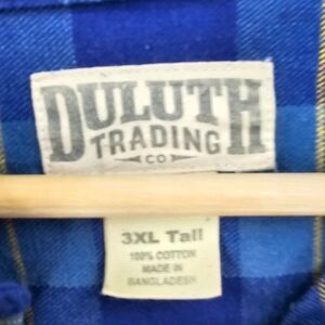 Duluth Trading Company Mens 3XL Tall Blue Plaid Flannel Button Up Shirt