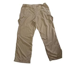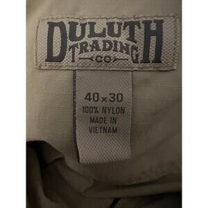 Duluth Trading Company Men's Armachillo Cooling Cargo Pants, 100% Nylon, 40x30. These feel cool to the touch thanks to fabric which incorporates microscopic cooling jade. Quick drying fabric wicks sweat and blocks the sun with UPF 40 protection. Lowr rise plus specially designed "crouch gusset" gives greater mobility for lunging or climbing a ladder. 7 pocket design -- bellowed cargo pockets expand to hold more gear. Back pockets have Velcro close. Elastic waist, odor fighting finish. Retail for $79, Excellent condition.