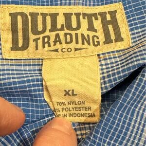 This Duluth Trading Company men's work shirt is in excellent condition and ready for your next adventure! The blue plaid design is both stylish and functional, making it perfect for work or play.