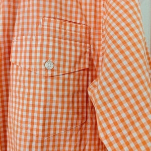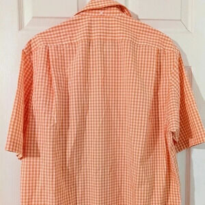 Duluth Trading Company Orange White Gingham Print Short Sleeve Shirt-Large Tall.