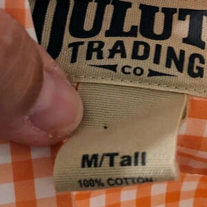 Duluth Trading Company Orange White Gingham Print Short Sleeve Shirt-M Tall