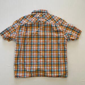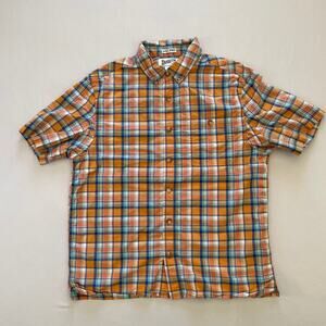 Keywords: Duluth Trading Company Shirt Mens Medium Orange Plaid Untucked Relaxe Fit