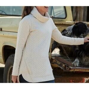 Duluth Trading Company Women Quilted Sweatshirt Tunic L Large Ivory White Pocket