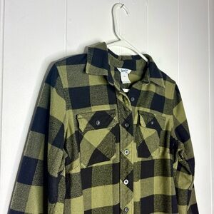 Duluth Trading Company Women’s Flannel Button Down Shirt Green Black Size XS